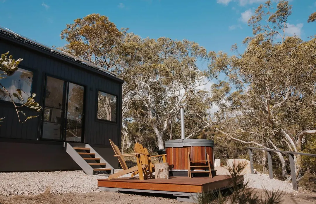 Tiny Wombat And Wallaby villa is voorzien van een koelkast, een kookplaat en keukengerei in een ingerichte keuken.